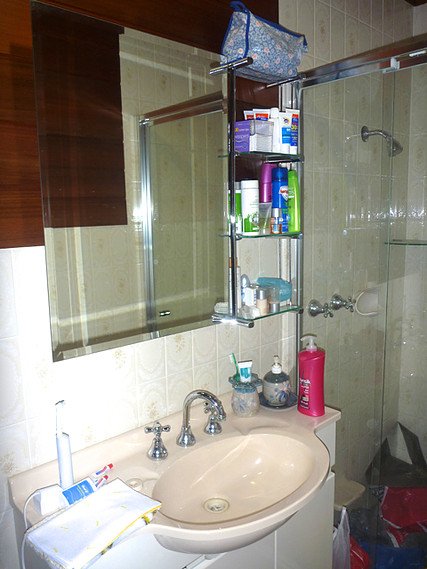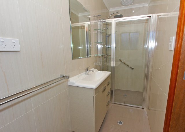 Our client wanted to improve the country feel of this vanity area. This goal was achieved through the use of suitable tiling and features.