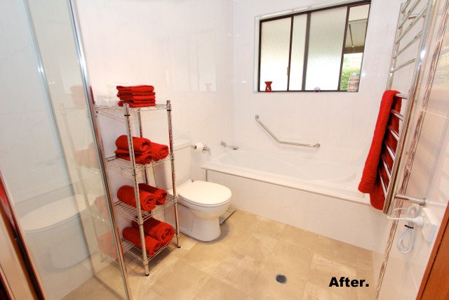 This dated bathroom was in need of an upgrade, so we worked with the client to determine what would best meet their needs. By redesigning the layout of the room and utilising the space from an adjoining cupboard, we were able to provide a more spacious feel whilst also adding the functionality of a toilet to the room.